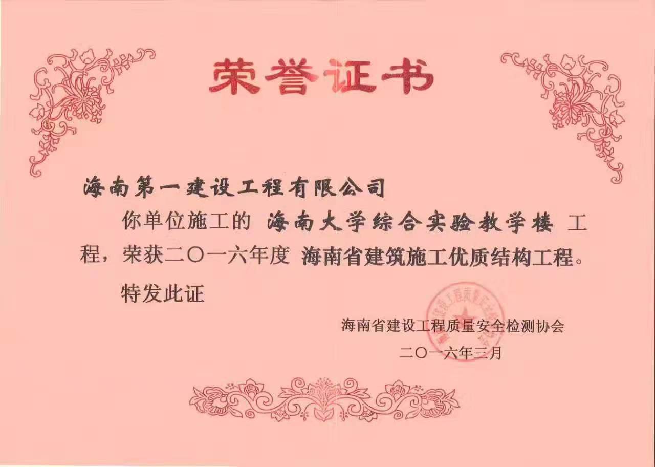 综合实验教学楼荣获省优质结构工程奖