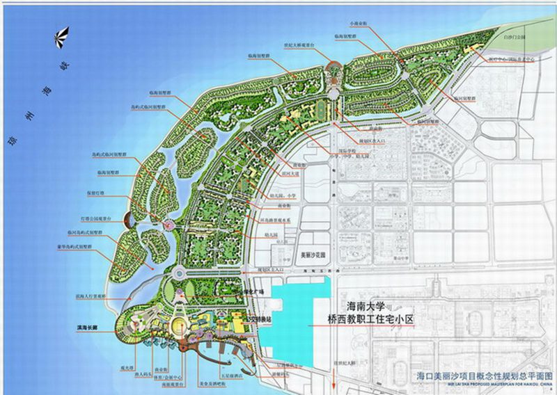 近日,由海口市规划局悉,与海大未来桥西教工居住区密切相关的《海口美丽沙项目概念性规划》已于日前通过评审,现已公示。