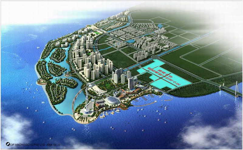 项目总体规划的土地主要分为两个部分:动态地带——南部的公建区域;静态地带——北部的居住区域,南部动态区中布置有观景台、体育/会展中心、公交中转站、绿化中央广场、商业街、美食及酒吧街、五星级酒店、渔人码头等配套基础设施,既提供商业服务也有休闲娱乐设施,服务海口市民及观光游客,绿化中央广场给市民提供休闲聚会及观光场所。