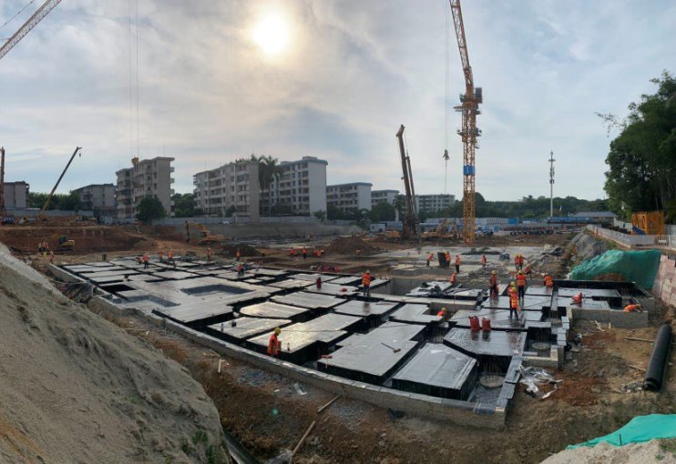 在工程建设过程中,面对前期拆迁、疫情、台风等诸多不利因素影响下,中建一局项目部全体人员迎难而上,积极协调各方、组织分配劳务资源、加大人材机投入,实现2020年7月30日出正负零、2020年10月30日主体结构封顶、2021年9月30日完成所有建设任务的目标,顺利完成所有节点计划。同时,项目“2020年度海南省建设工程施工优质结构工程”及“海南省建筑安全文明施工标准化工地”双奖齐下,树立中建完美履约典范,也为海南自由贸易港建设做出贡献!