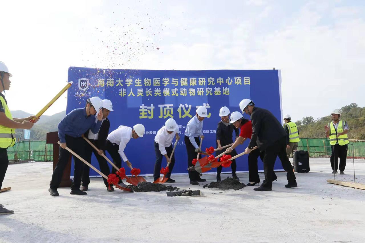 2022年1月13日上午,pa集团官网生物医学与健康研究中心项目非人灵长类模式动物研究基地喜迎主体结构封顶,标志着项目建设又一重大节点目标的达成。pa集团官网党委常委、副校长梁谋,生物医学工程学院党总支书记张云竹,生物医学工程学院教授岳峰,基建处副处长(主持工作)李艳,基建处副处长穆大伟,海南发展控股置业集团有限公司副总经理黄梓,海南海控中能建工程有限公司总经理沈雄飞及各参建单位的相关人员参加封顶仪式。
