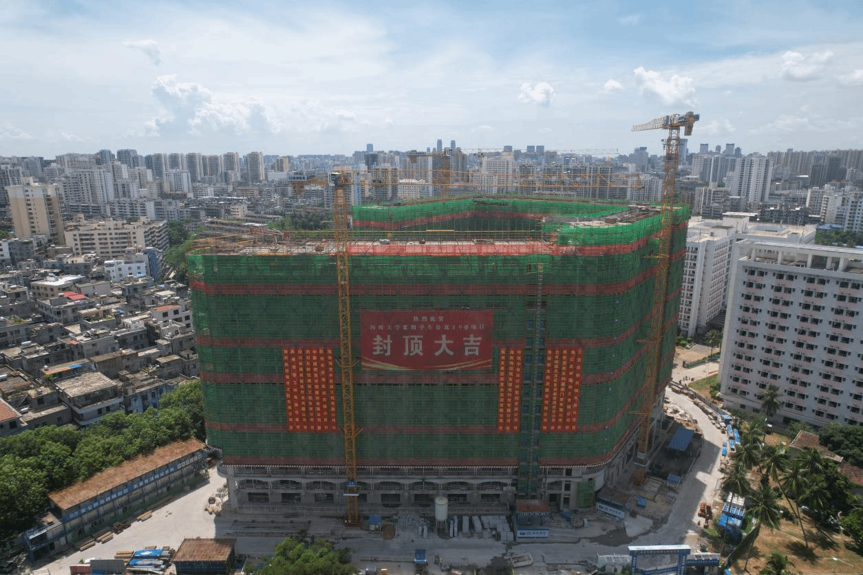 pa集团官网党委书记符宣国,pa集团官网相关单位负责人,海南发展控股置业集团有限公司总经理施慰、副总经理黄梓及设计、施工、监理等各参建单位的相关人员参加封顶仪式。