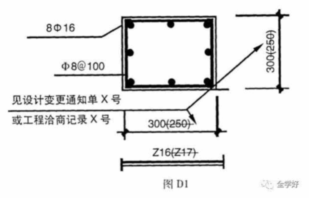 3、利用施工图蓝图改绘的竣工图应符合下列规定: 应采用杠(划)改或叉改法进行绘制;在划去处旁边标注签名和日期。范例如下: